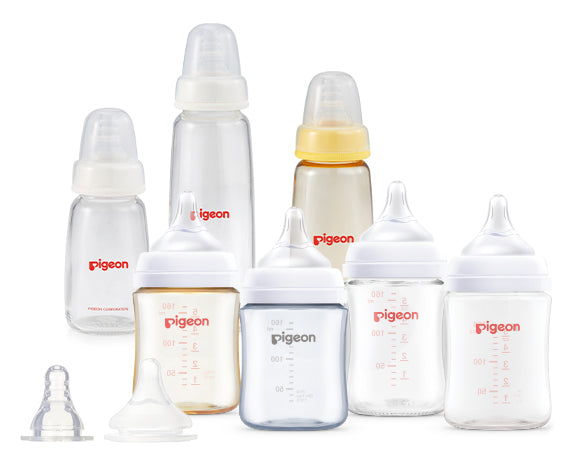 Pigeon offers an extensive range of essential bottles & teats to support expressed breast milk or formula fed babies. Our bottles are specially designed for gentle grip and all teats feature a unique venting system to adjust air pressure inside the bottle to help reduce colic in babies.