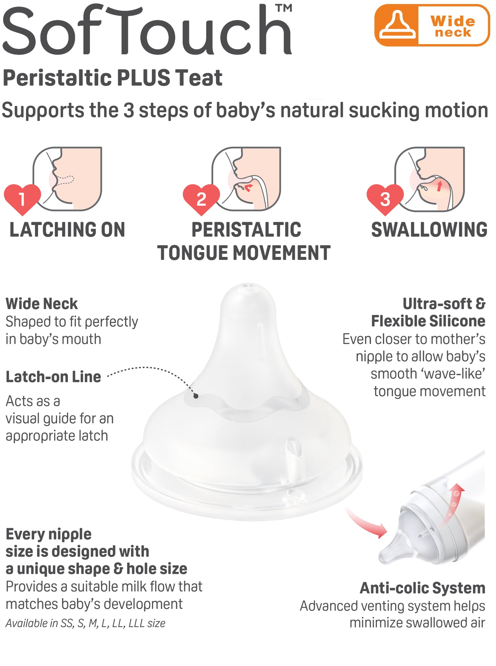 Pigeon SofTouchâ„¢ bottles and teats are recognised by their wide neck and offers the most natural feeding - through a bottle. This range is generally recommended when: