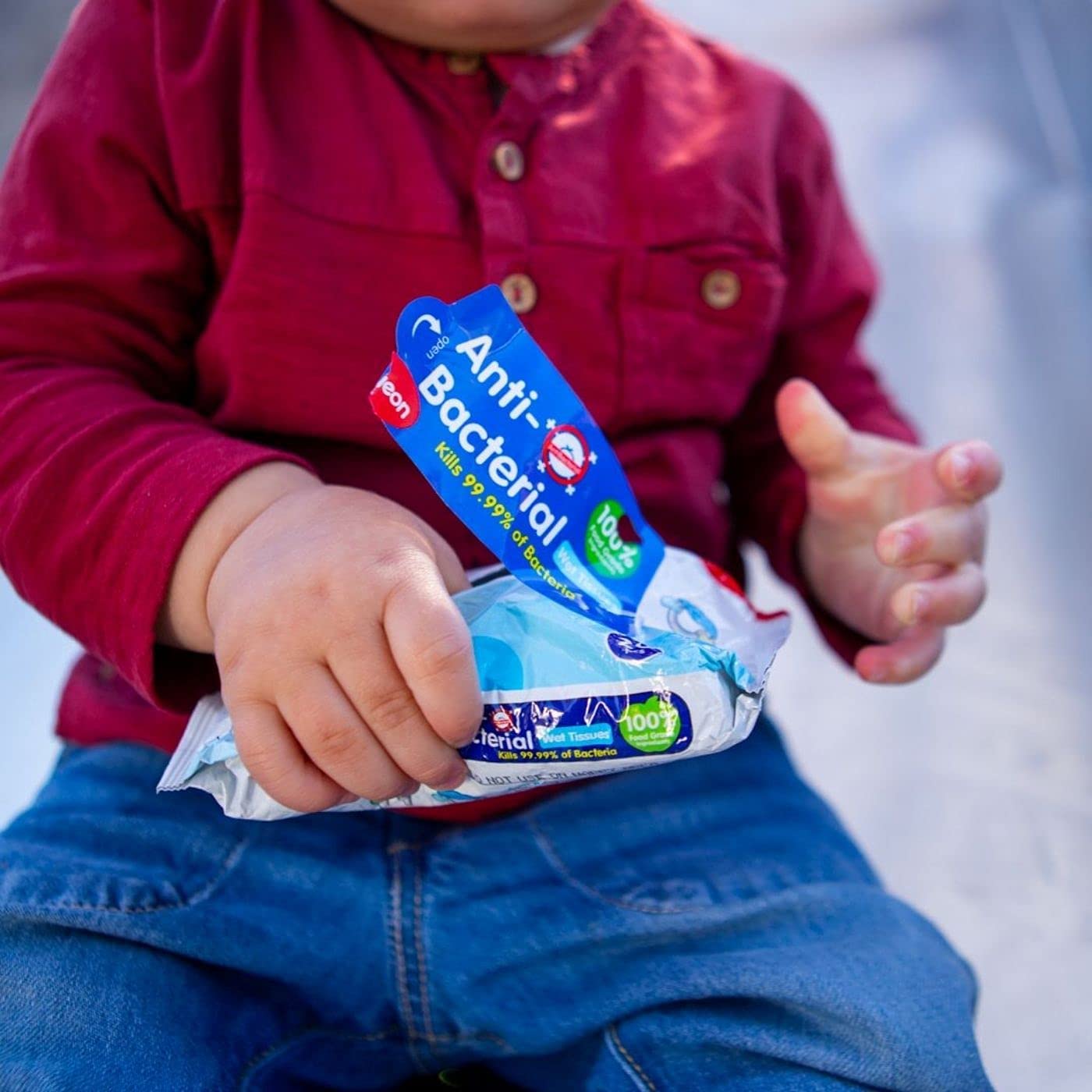 Pigeon Anti Bacterial Wipes are made from 100% food grade ingredients and effectively kill 99.99% of bacteria.