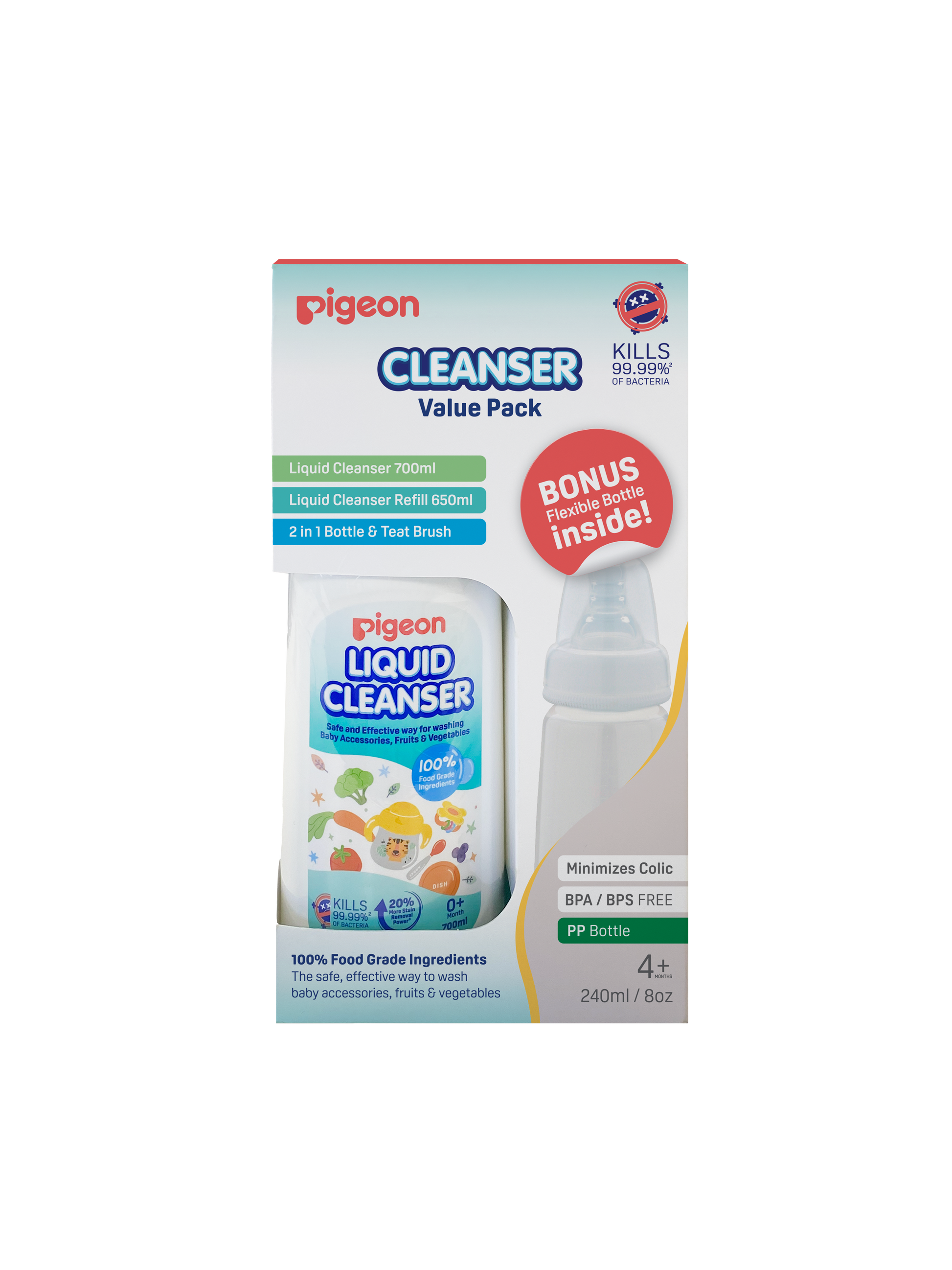 Pigeon Liquid Cleanser is a multi-use cleaning product for use on baby bottles, teats, toys and accessories. Use also to wash fresh fruit and vegetables.