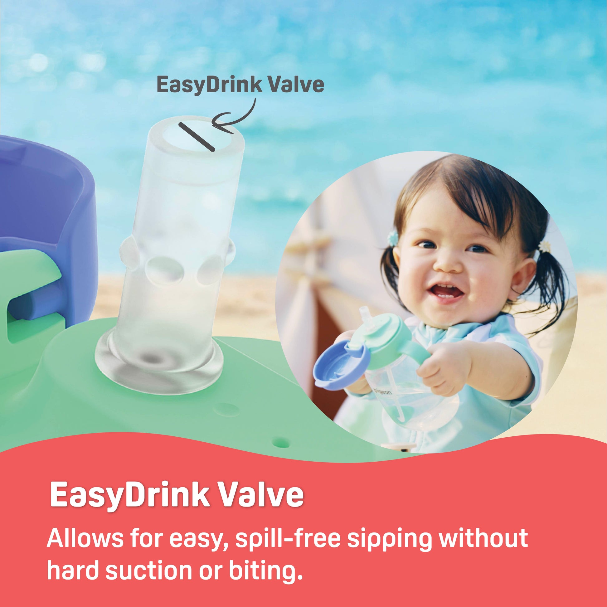 The short, textured straw tip guides correct placement, while the EasyDrink valve allows effortless sipping without biting. A gravity ball keeps liquid flowing from any angle for stress-free drinking.